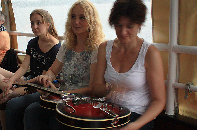 5. Juli 2012 Was für eine friedvolle Nacht! Welch stimmungsvolle Fahrt! Musikanten, Besatzung und Gäste wähnten sich allesamt an die Gestade des Mittelmeers versetzt, als nach grandiosem Sonnenuntergang die Mondschein-Serenade ihren Lauf nahm. Aber nein, es waren die Havelseen, die unser wackeres Schiff entlangdampfte. Und das Ensemble f�hlte sich, beschwingt durch die wolkenlose Weite des märkischen Horizonts, geradezu inspiriert zu musikalischen Höhenflügen. Manch süße Melodie erfüllte die klare Nachtluft. Und wenn die Gitarren schwiegen, sangen die Grillen, nur selten unterbrochen durch den klagenden Ruf des Reihers.